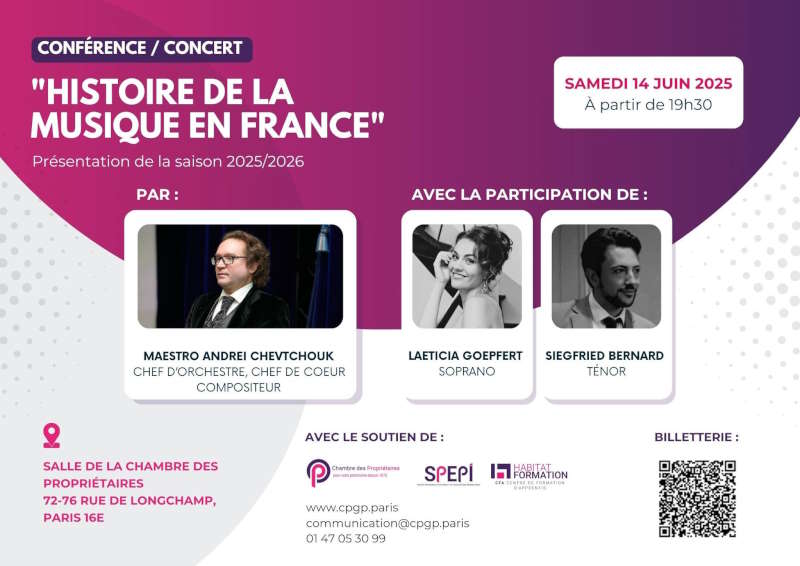 Cette soirée inaugurera la saison 2025/2026 des conférences musicales organisées avec le soutien précieux de la Chambre des Propriétaires immobiliers du Grand Paris, engagée dans la promotion de la culture.